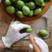 - Zerdrücke die Blätter, um den Saft freizusetzen.